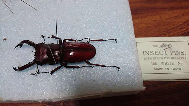 そいえば以前、作ってもらった標本があった。。。我が家にある唯一の標本を見本にしつつ、ピン刺してと 完成。