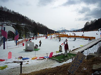 なのでファミリーが大半。ボードも禁止なので、初心者の子供連れには安心して滑らせれますね!
