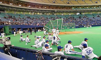 しかし今回はここ、ナゴヤドームでオープン戦を観てます。